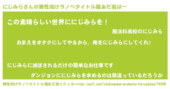 | 女子向けラノベタイトル風あだ名 | 『にじみら夫妻のなれそめ』 |