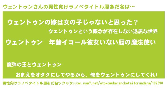 | 女子向けラノベタイトル風あだ名 | 『ウェントゥンの玉の輿計画!』 |