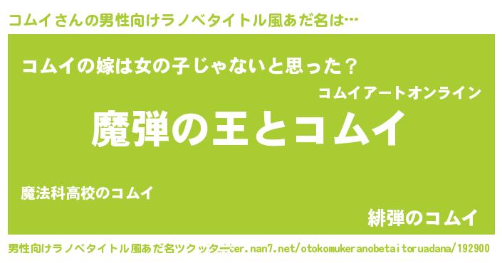| 意味不明あだ名 | 『住所不定無職コムイ(81歳)』『自称コムイ』 |
