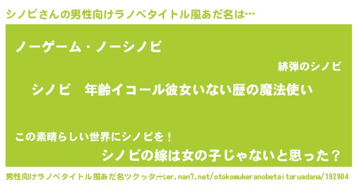 | ヒーロー風カッコイイあだ名 | 『天空の使者シノビ』『幻影騎士シノ』 |