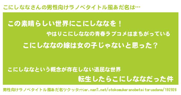 | 女子向けラノベタイトル風あだ名 | 『こにしなな様がみてる』 |
