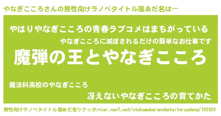 | 女子向けラノベタイトル風あだ名 | 『やなぎこころが死なない童話 林檎のやなぎこころの診療簿』 |