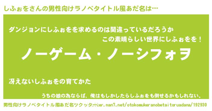 | 女子向けラノベタイトル風あだ名 | 『死神しふぉをの再婚』 |