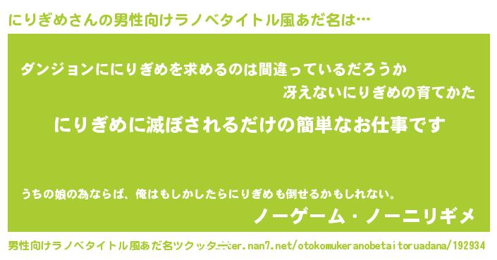 にりぎめさんの男性向けラノベタイトル風あだ名をツクッター!