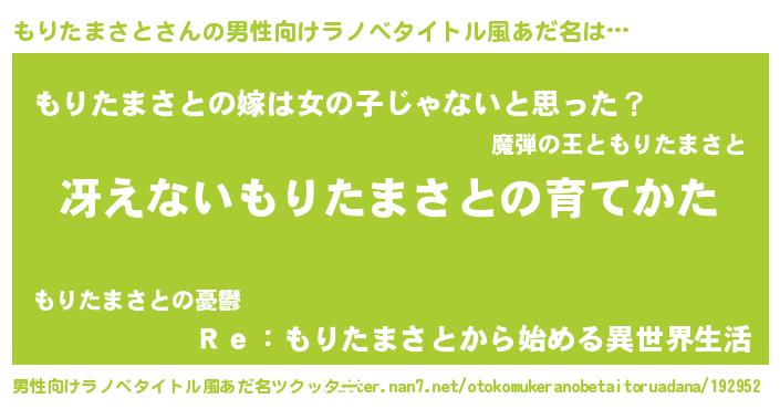 | 女子向けラノベタイトル風あだ名 | 『男装もりたまさとの憂鬱な任務』 |
