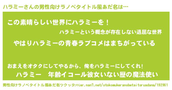 | 女子向けラノベタイトル風あだ名 | 『ハラミーの雑貨屋さん』 |