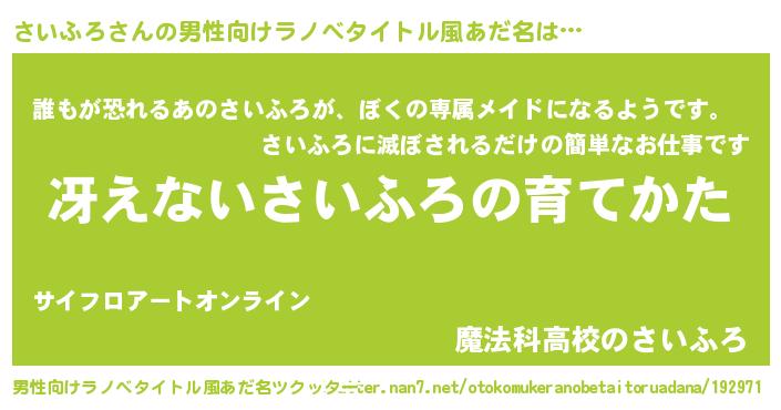 さいふろさんの男性向けラノベタイトル風あだ名をツクッター!
