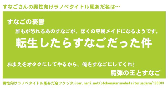 | 胡散臭い通販商品みたいなあだ名 | 『モテモテ間違いなしブレスレット…その名も「すなご」』 |