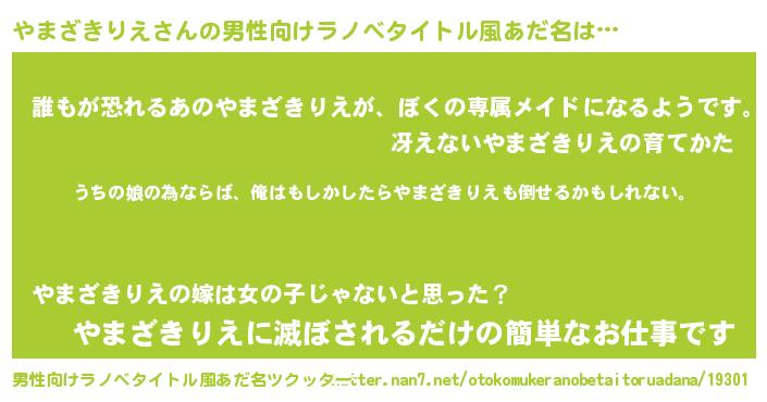 | 女子向けラノベタイトル風あだ名 | 『やまざきりえ伯爵の花嫁』 |