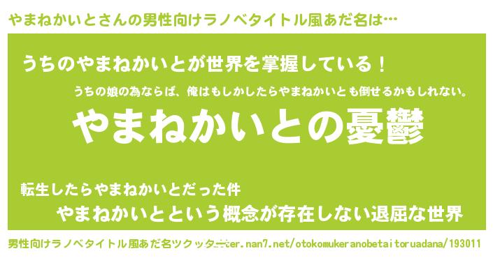 | 胡散臭い通販商品みたいなあだ名 | 『必ず成功するブレスレット…その名も「やまねかいと」』 |