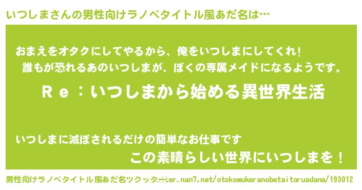 | 女子向けラノベタイトル風あだ名 | 『闇のいつしま』『いつしまの契約王妃』 |