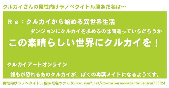 | 胡散臭い通販商品みたいなあだ名 | 『あなたにだけ特別に提供する100年もののヴィンテージワイン…その名も「クルカイ」』 |