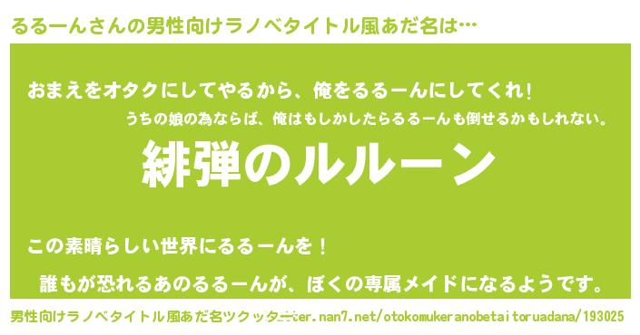 | ヘコむあだ名 | 『るるーん(笑)』『豆乳』『るるにー』 |