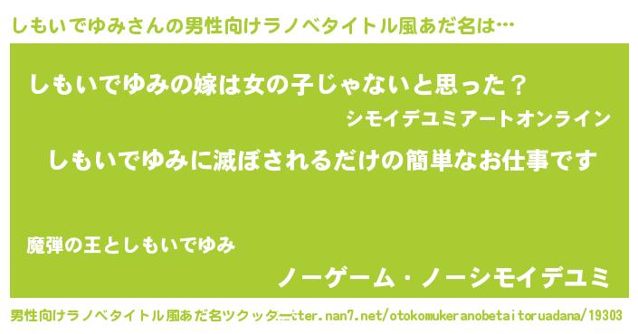 | ポケモン風あだ名 | 『シモゴンZ』『ヒシモイデユミ』 |