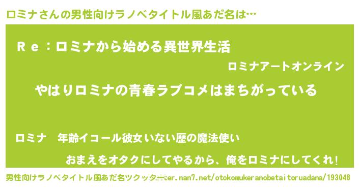 | 意味不明あだ名 | 『ロミナフォーエバー』『自称ロミナ』 |