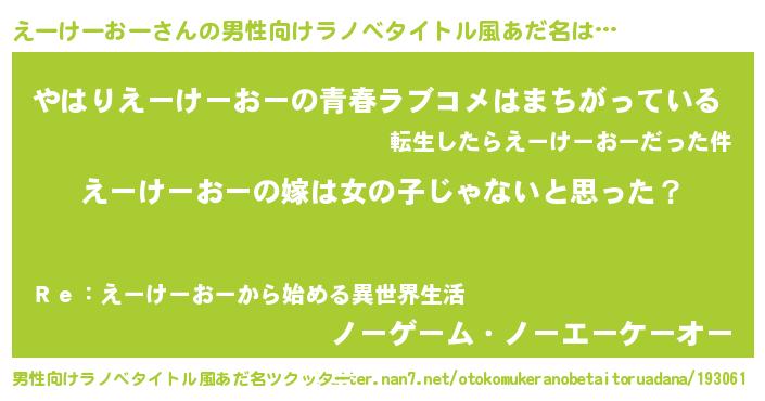 | 女子向けラノベタイトル風あだ名 | 『えーけーおーの卵を拾いまして』 |