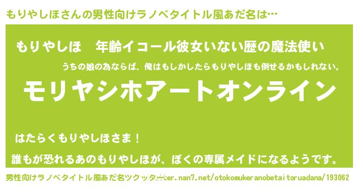 | 胡散臭い通販商品みたいなあだ名 | 『億万長者になれるブレスレット…その名も「もりやしほ」』 |