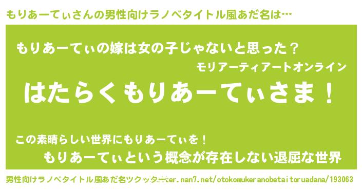 | 意味不明あだ名 | 『とにかく怪しいもりあーてぃ』 |