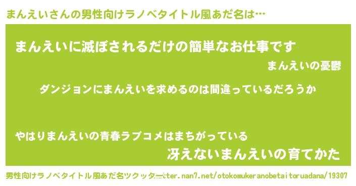 | 女子向けラノベタイトル風あだ名 | 『まんえいは平凡を望む』 |