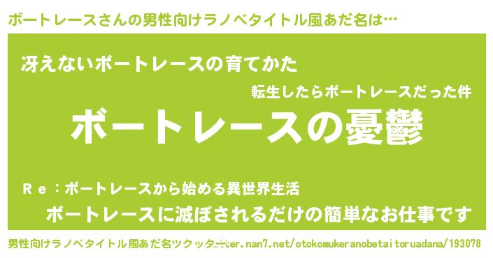 | 女子向けラノベタイトル風あだ名 | 『(仮)ボートレースのやんごとなき事情』 |