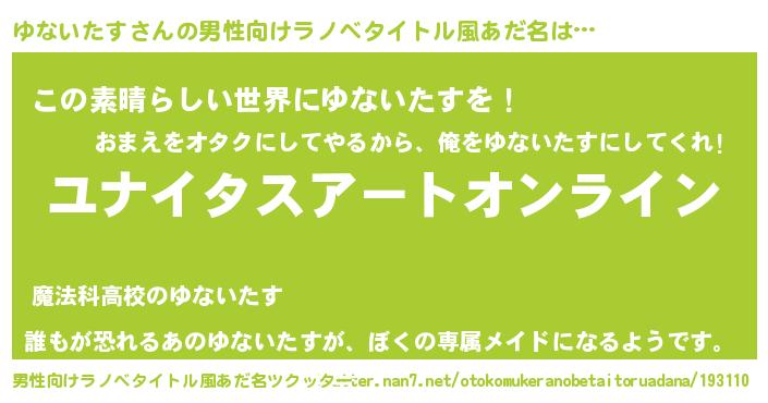 | 胡散臭い通販商品みたいなあだ名 | 『億万長者になれる水晶球…その名も「ゆないたす」』 |