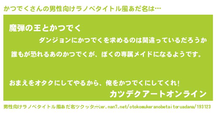 | 胡散臭い通販商品みたいなあだ名 | 『前代未聞の健康食品…その名も「かつでく」』 |