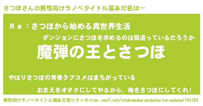 | 意味不明あだ名 | 『住所不定無職さつほ(89歳)』『自称さつほ』 |