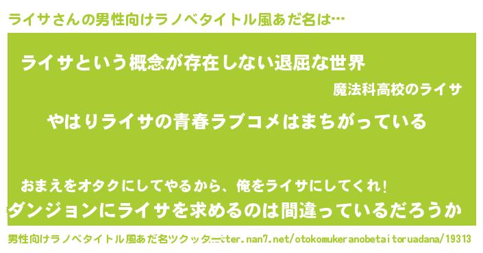 | ヒーロー風カッコイイあだ名 | 『ウルトラライサマン』『ネオライサ』 |