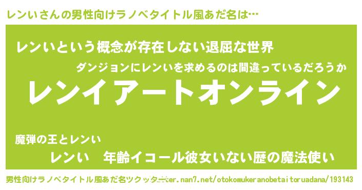 | 女子向けラノベタイトル風あだ名 | 『レンい姫と円卓の騎士』 |