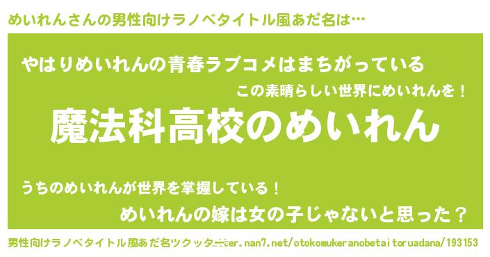 | 女子向けラノベタイトル風あだ名 | 『めいれんなんてお断りですっ。』 |