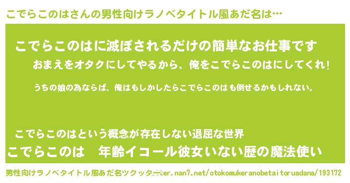 | ファンタジー風あだ名 | 『エターナルコデラコノハー』 |