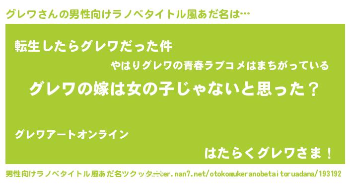 | 意味不明あだ名 | 『とにかく怪しいグレワ』 |