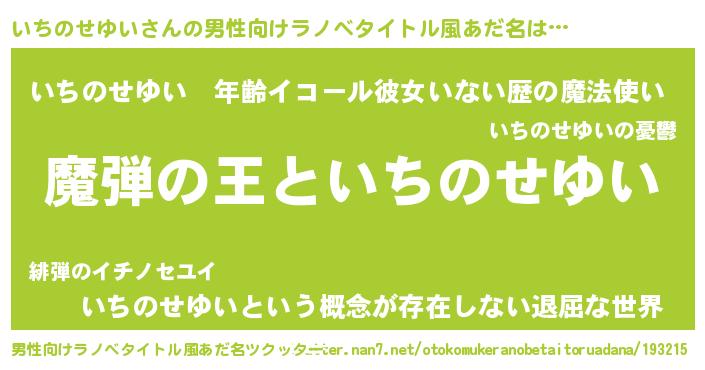 | 意味不明あだ名 | 『住所不定無職いちのせゆい(91歳)』 |