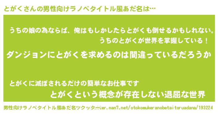 | 女子向けラノベタイトル風あだ名 | 『とがくは平凡を望む』『とがくの婚約者』 |