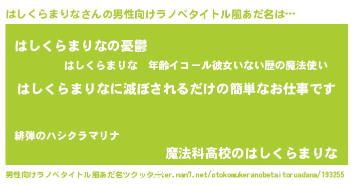 | 胡散臭い通販商品みたいなあだ名 | 『モテモテ間違いなし霊験あらたかなお札…その名も「はしくらまりな」』 |