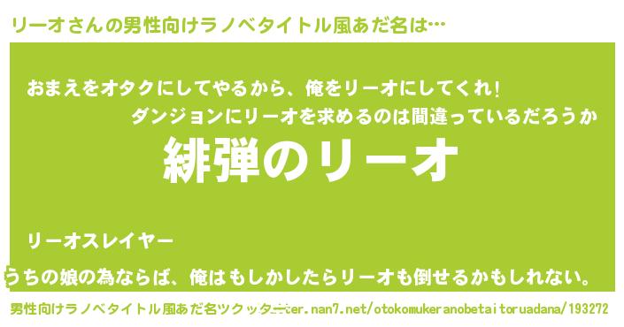 | 意味不明あだ名 | 『眠気覚ましガムリーオ味』『自称リーオ』 |