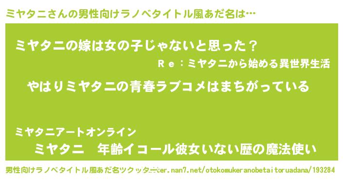 | ヒーロー風カッコイイあだ名 | 『ウルトラミヤタニマン』『天弓騎士ミヤ』 |