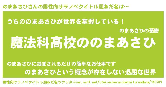 | 女子向けラノベタイトル風あだ名 | 『のまあさひなんてお断りですっ。』 |