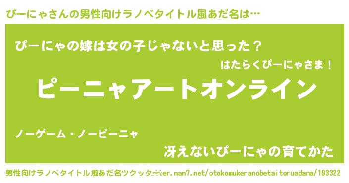 | 胡散臭い通販商品みたいなあだ名 | 『モテモテ間違いなしブレスレット…その名も「ぴーにゃ」』 |