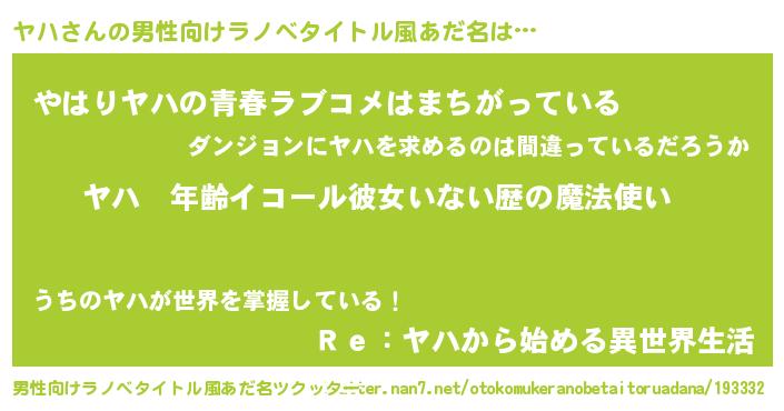 | ファンタジー風あだ名 | 『ユリヤハヴァット』『エターナルヤハー』 |