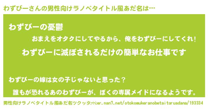 | ヘコむあだ名 | 『わずにー』『わずびー(小並感)』 |