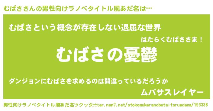 | 女子向けラノベタイトル風あだ名 | 『むばさ姫と円卓の騎士』 |