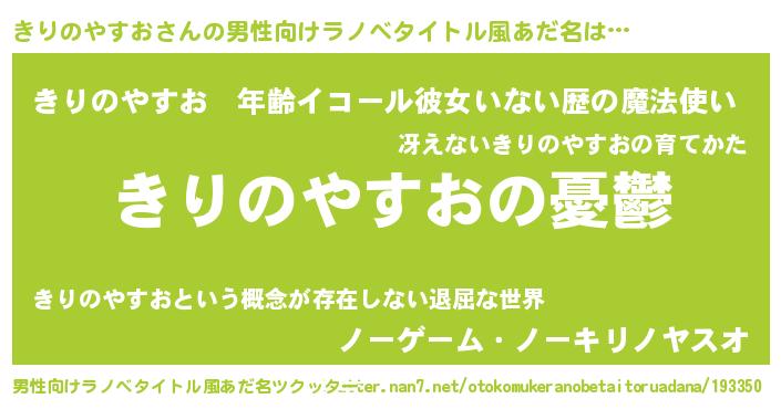 | 女子向けラノベタイトル風あだ名 | 『(仮)きりのやすおのやんごとなき事情』 |