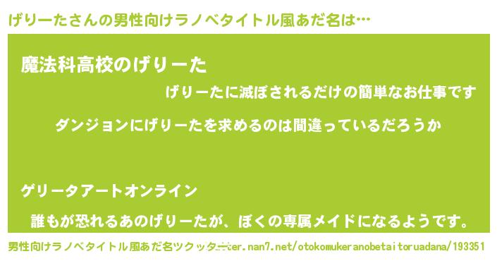 | 女子向けラノベタイトル風あだ名 | 『げりーたは平凡を望む』 |