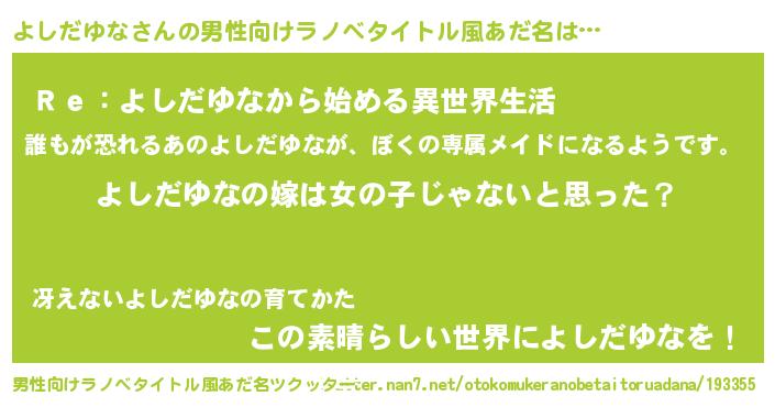 | 女子向けラノベタイトル風あだ名 | 『よしだゆな様がみてる』 |