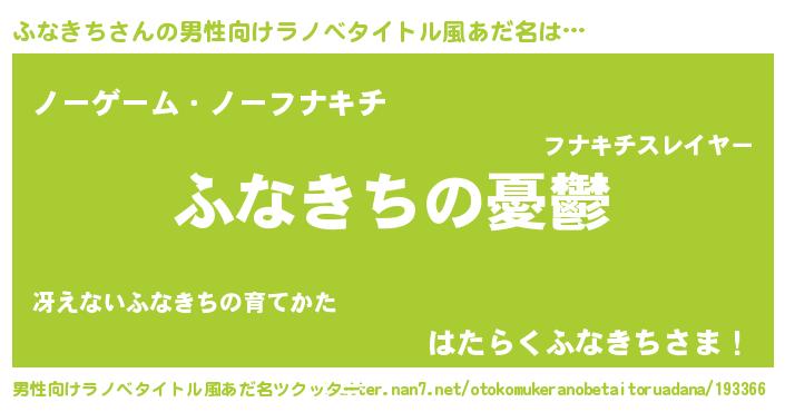 | 女子向けラノベタイトル風あだ名 | 『ふなきち姫と円卓の騎士』 |
