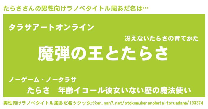 たらささんの男性向けラノベタイトル風あだ名をツクッター!