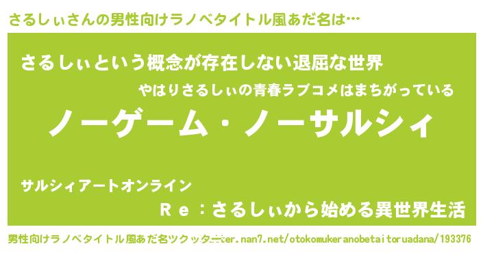 | 女子向けラノベタイトル風あだ名 | 『さるしぃ恋絵巻』『さるしぃ伯爵の花嫁』 |