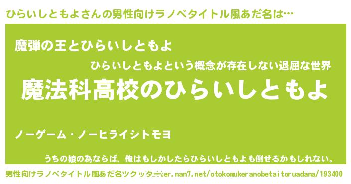| 女子向けラノベタイトル風あだ名 | 『ひらいしともよなんてお断りですっ。』 |