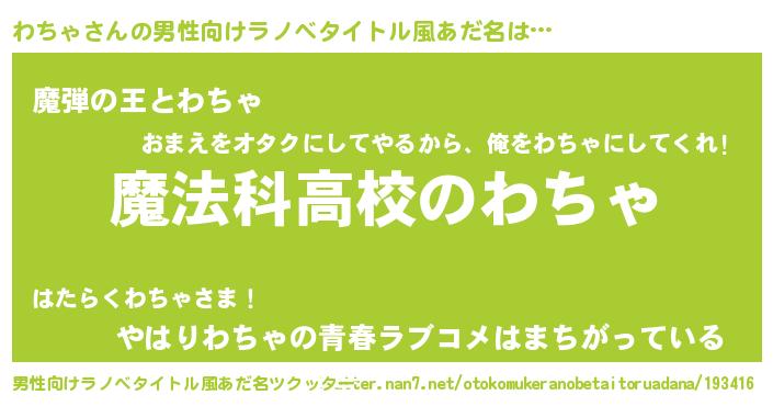 | 女子向けラノベタイトル風あだ名 | 『わちゃアンティーク』 |